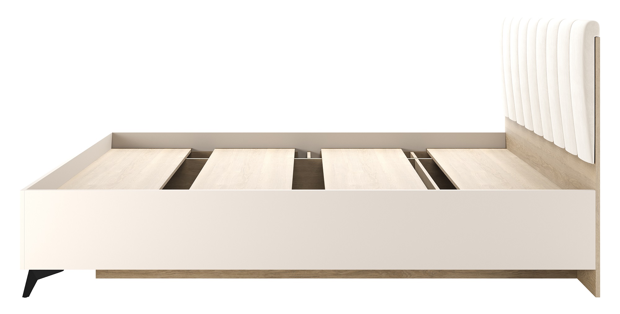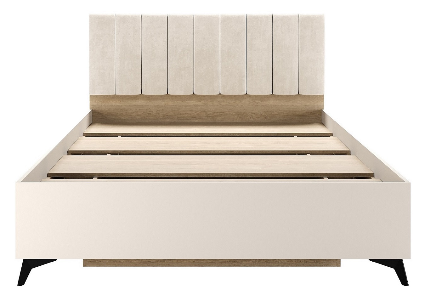 Кровать 1400 «ЕВА» с настилом ЛДСП и мягким изголовьем, обшитым качественным велюром UNIQ. Внутренний органайзер для хранения вещей. Габариты спального места: 2000 х 1400 мм. Чёрные металлические ножки-опоры.