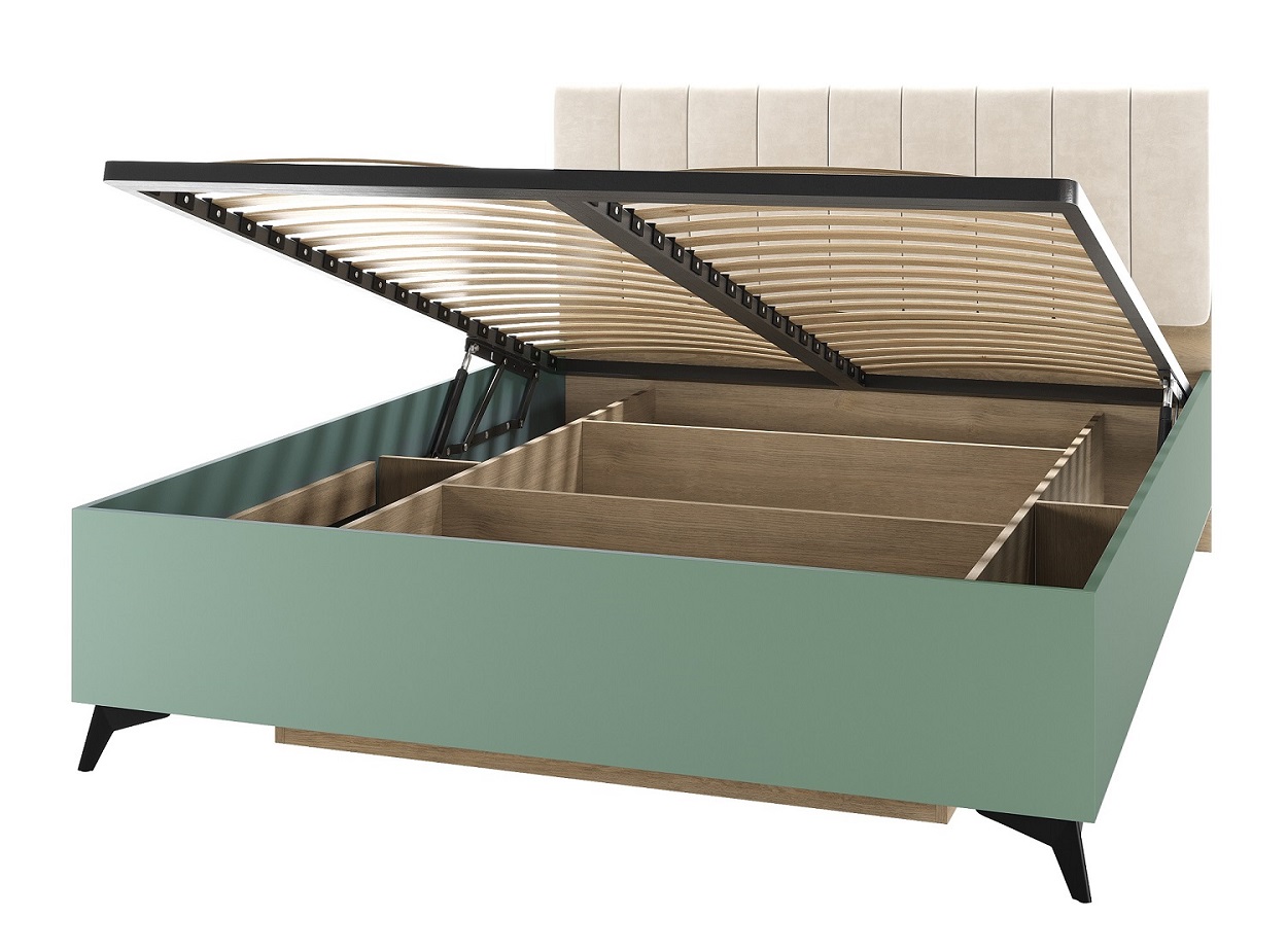 Кровать 1400 «ЕВА» с подъёмным механизмом и мягким изголовьем, обшитым качественным велюром UNIQ. Оснащается ортопедическим основанием, имеющим подъёмный механизм, обеспечивающий лёгкий доступ и удобное хранение большого количества спальных принадлежностей и вещей. Габариты спального места: 2000 х 1400 мм. Чёрные металлические ножки-опоры.