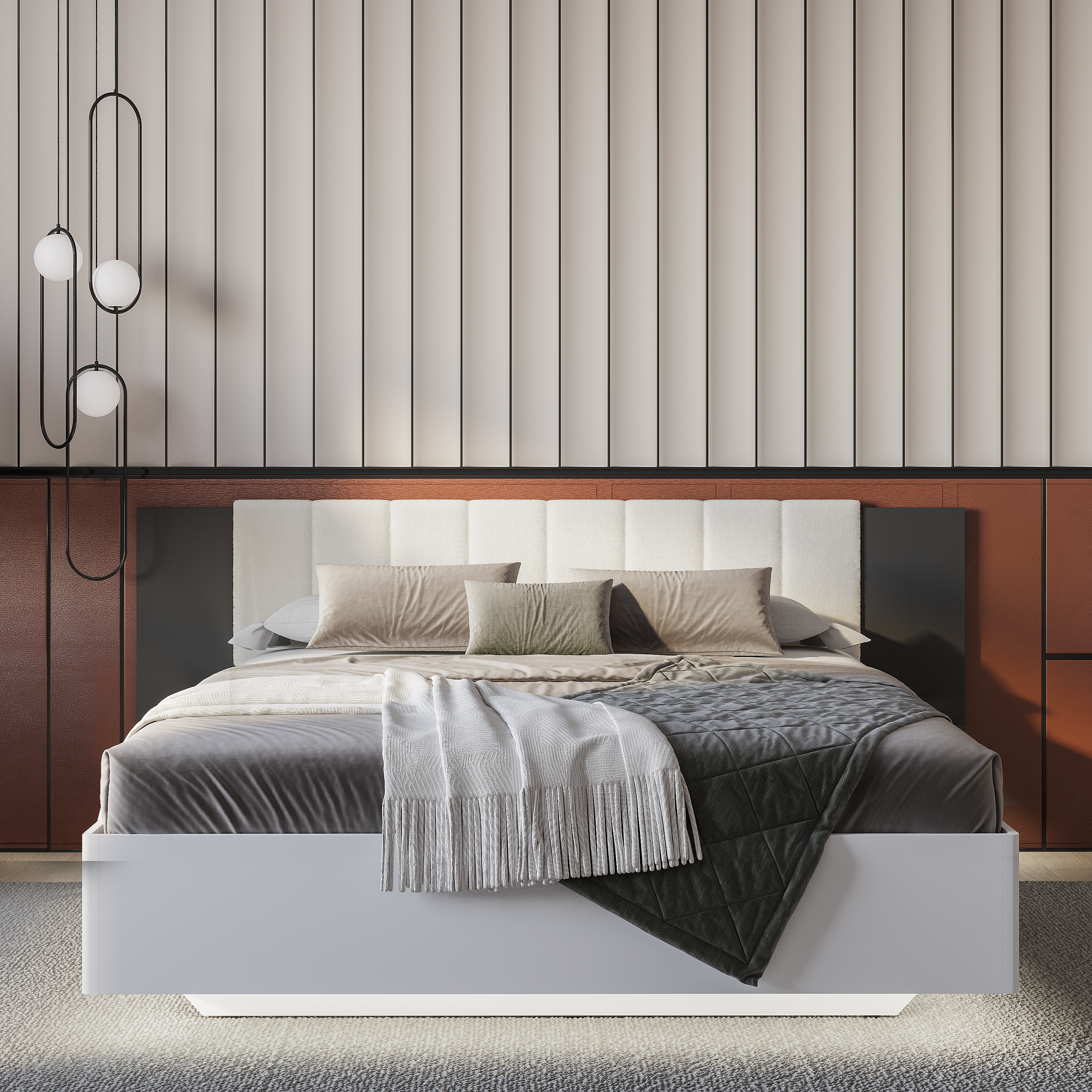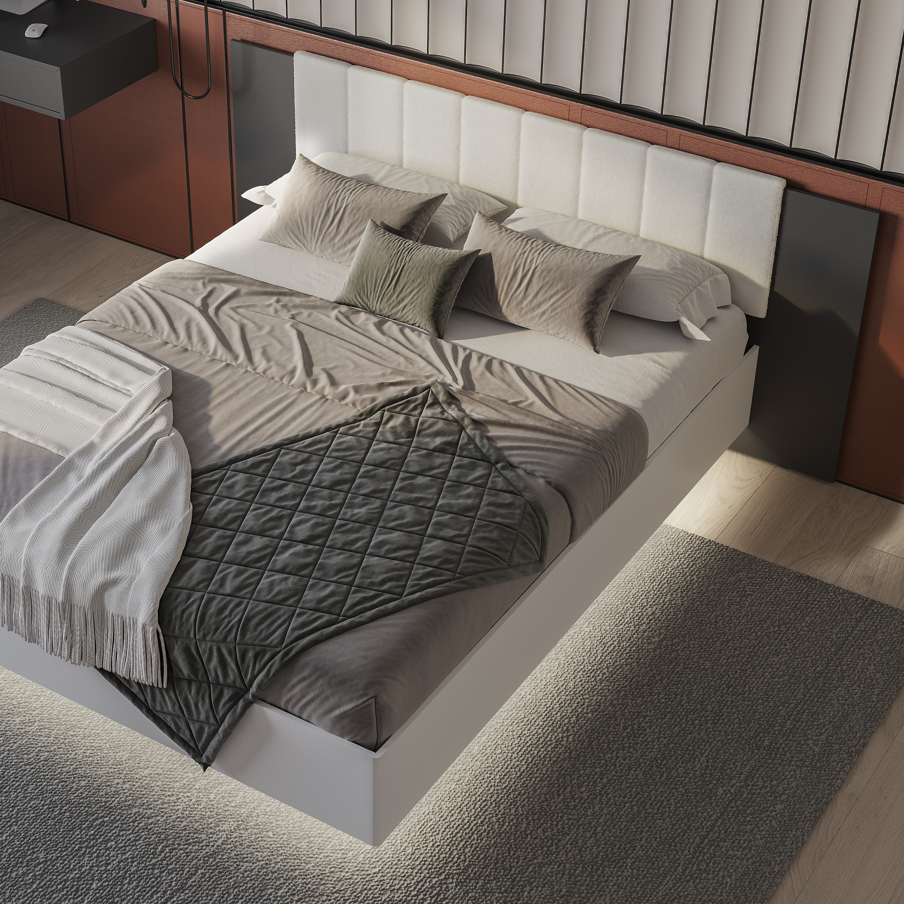 Коллекция «Шарм» - современная классика в контрастном исполнении «белый/графит». Кровать с парящим эффектом в трендовой ткани «барашек» - сердце коллекции.
