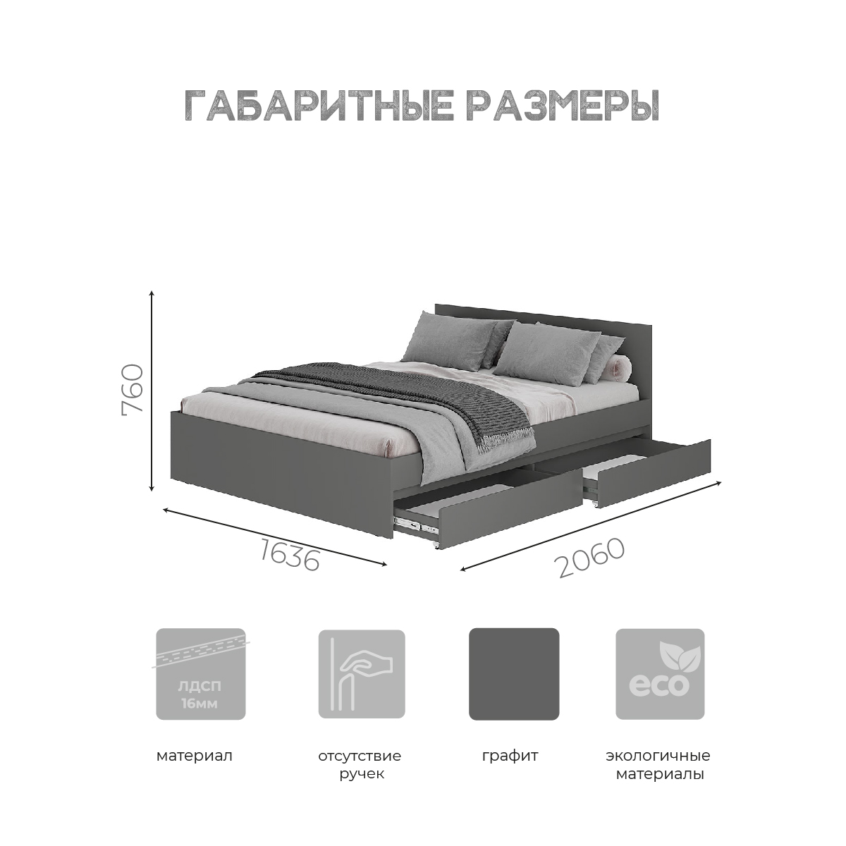 Кровать 1,4 м "Симпл" КР-12 графит (без основания )