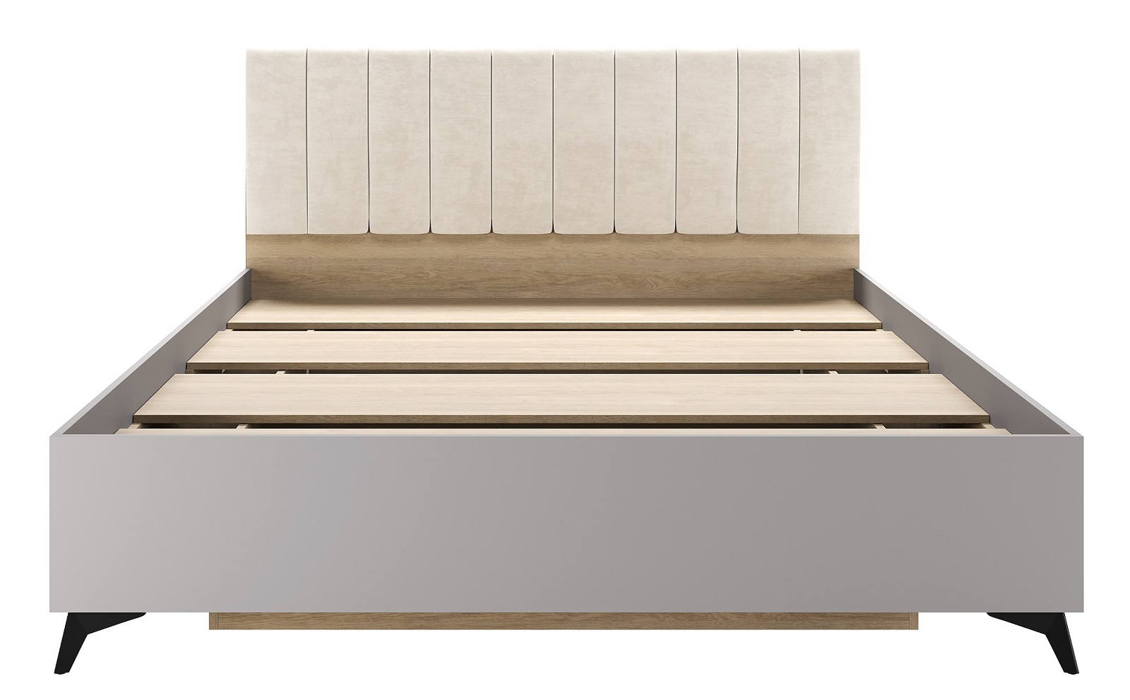 Кровать 1600 «ЕВА» с настилом ЛДСП и мягким изголовьем, обшитым качественным велюром UNIQ. Внутренний органайзер для хранения вещей. Габариты спального места: 2000 х 1600 мм. Чёрные металлические ножки-опоры.