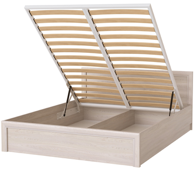 Кровать 1600 «Октава» с металлическим ортопедическим основанием с подъёмным механизмом. Периметр щитков кровати обрамлён профилем MDF оригинальной формы с патиной (окраской фасок) серебристого цвета. Рекомендуемый размер матраса 1600*2000 мм.