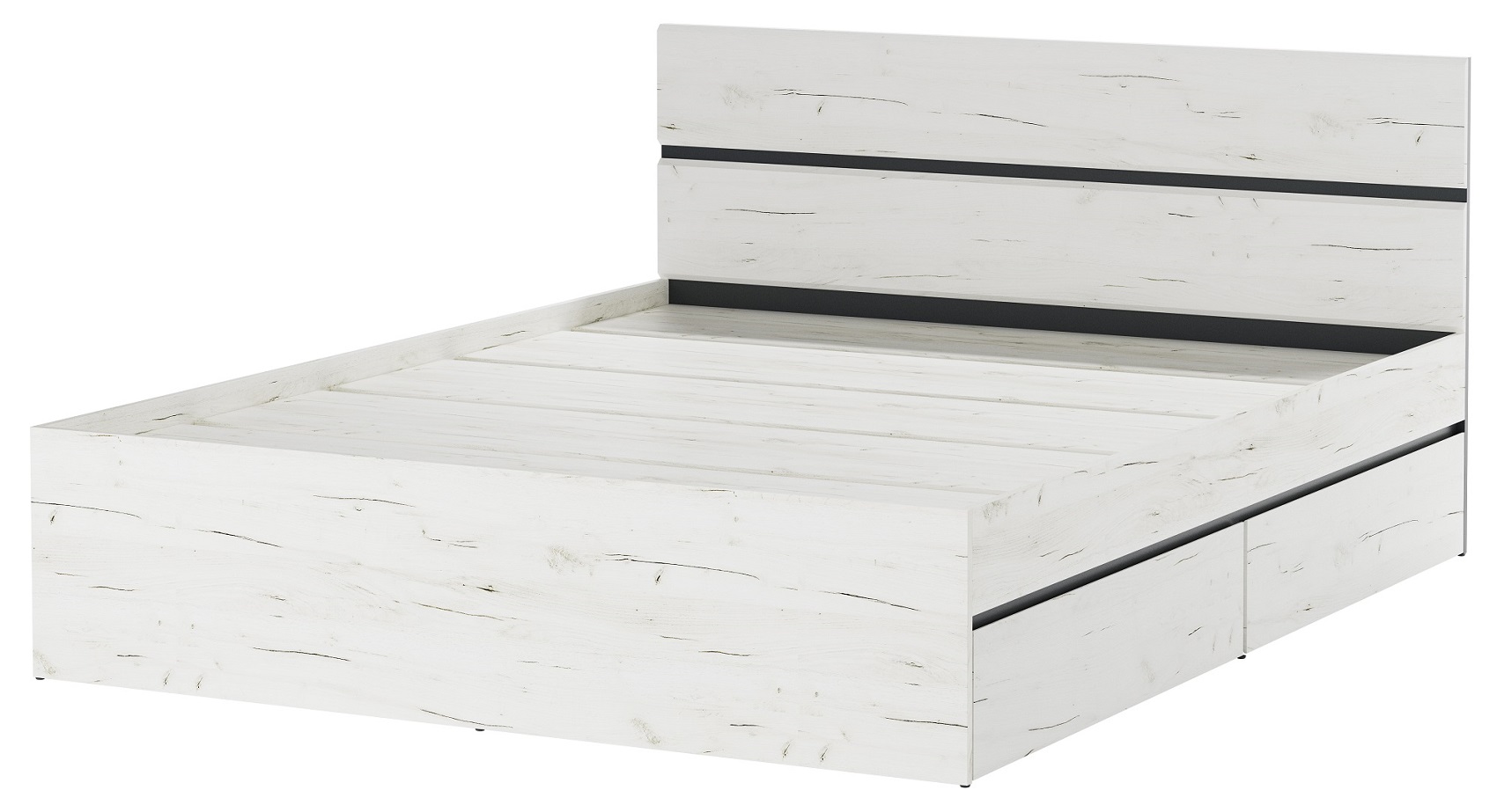 Кровать 1600 «ГРЕТТА» с ящиками и настилом ЛДСП. Применение интегрированной ручки на панелях ящиков делает модель стильной и безопасной – ящики выдвигаются за профилированные выступы. Фасады ящиков и щитков обработаны кромкой 1 мм. Дно ящиков выполнено из ЛДСП.