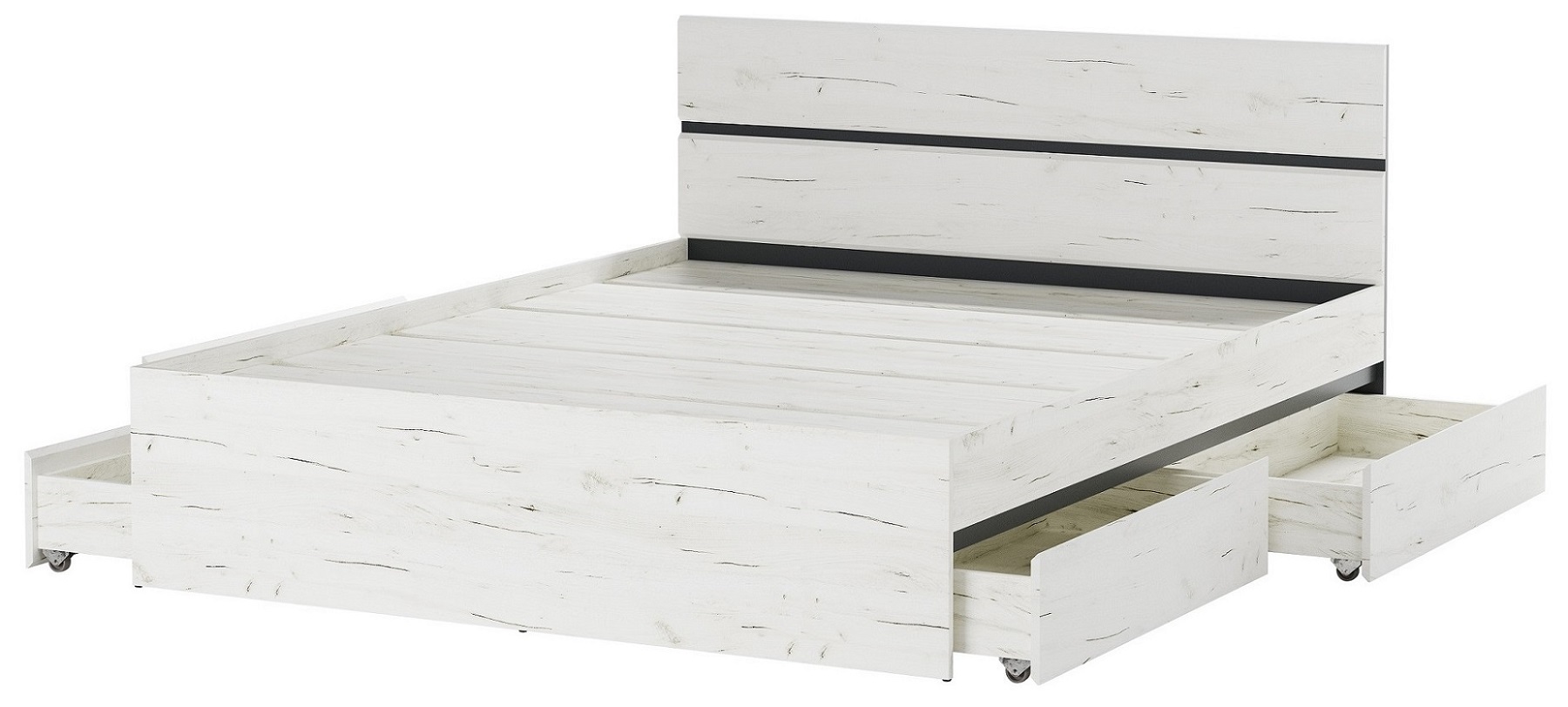 Кровать 1400 с ящиками "ГРЕТТА" Дуб Крафт белый - Антрацит