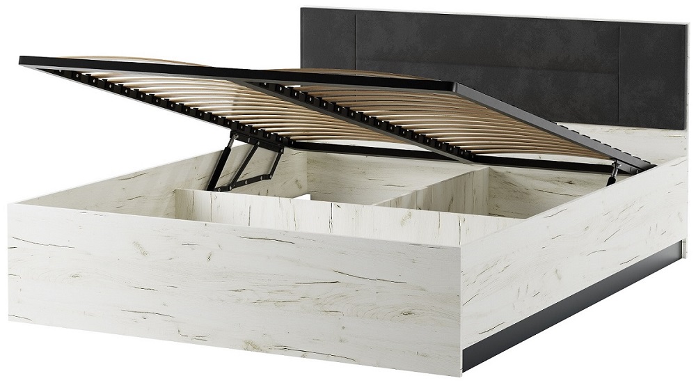 Кровати «БЕАТРИС» с ортопедическим основанием сочетают в себе лучшие потребительские качества. Вместительное хранилище для хранения вещей становится легкодоступным с помощью подъёмного механизма, а мягкое изголовье обшито качественным велюром, прекрасно сочетающимся с декорами мебели.