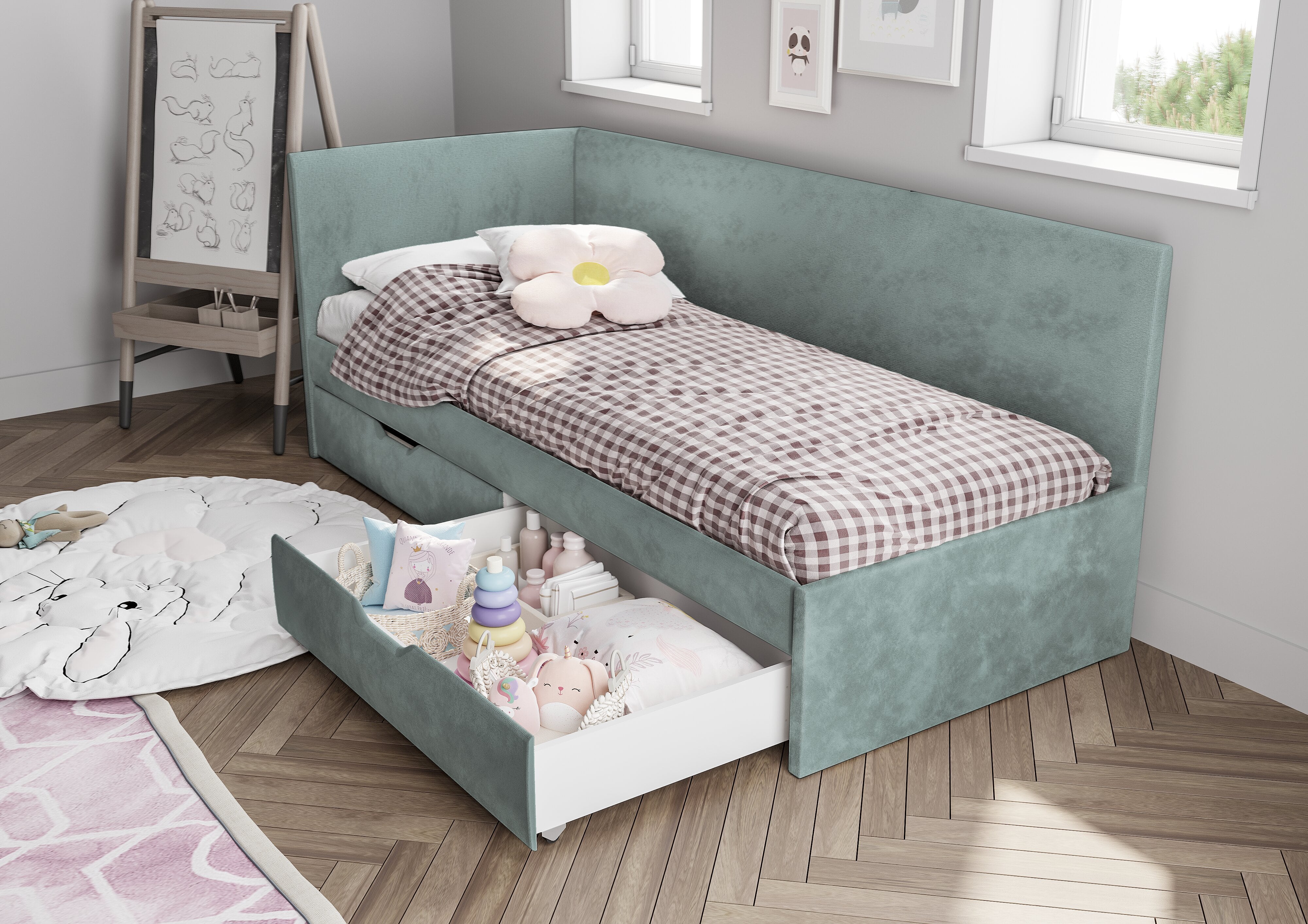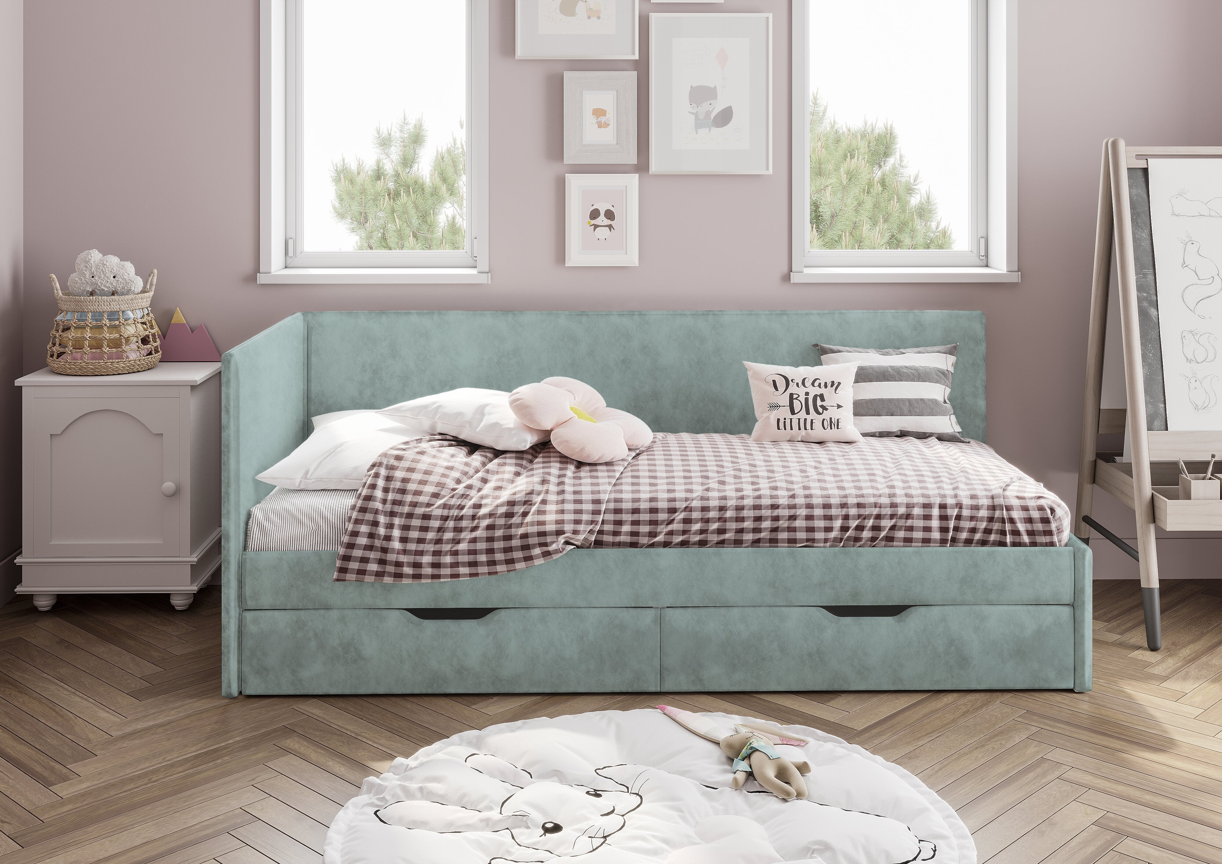 Описание. Кровать «Лео» - лучший выбор для детской комнаты. Плавные и лаконичные линии конструкции создадут атмосферу гармонии и спокойствия. Одно из важных преимуществ кровати - это мягкая обивка из велюра, что обеспечивает более комфортное и безопасное использование. Отсутствие ручек, открывание происходит за счет формы фасадов Обивочный материал. Ткань велюр с эффектом хамелеона, не оставляет следов. Этот эффект достигается засчет специальной обработки материала, который содержит глянцевые частицы, отражающие свет под разными углами. Рекомендуемая высота матраса: пружинного - не менее 180 мм, беспружинного - не менее 160 мм