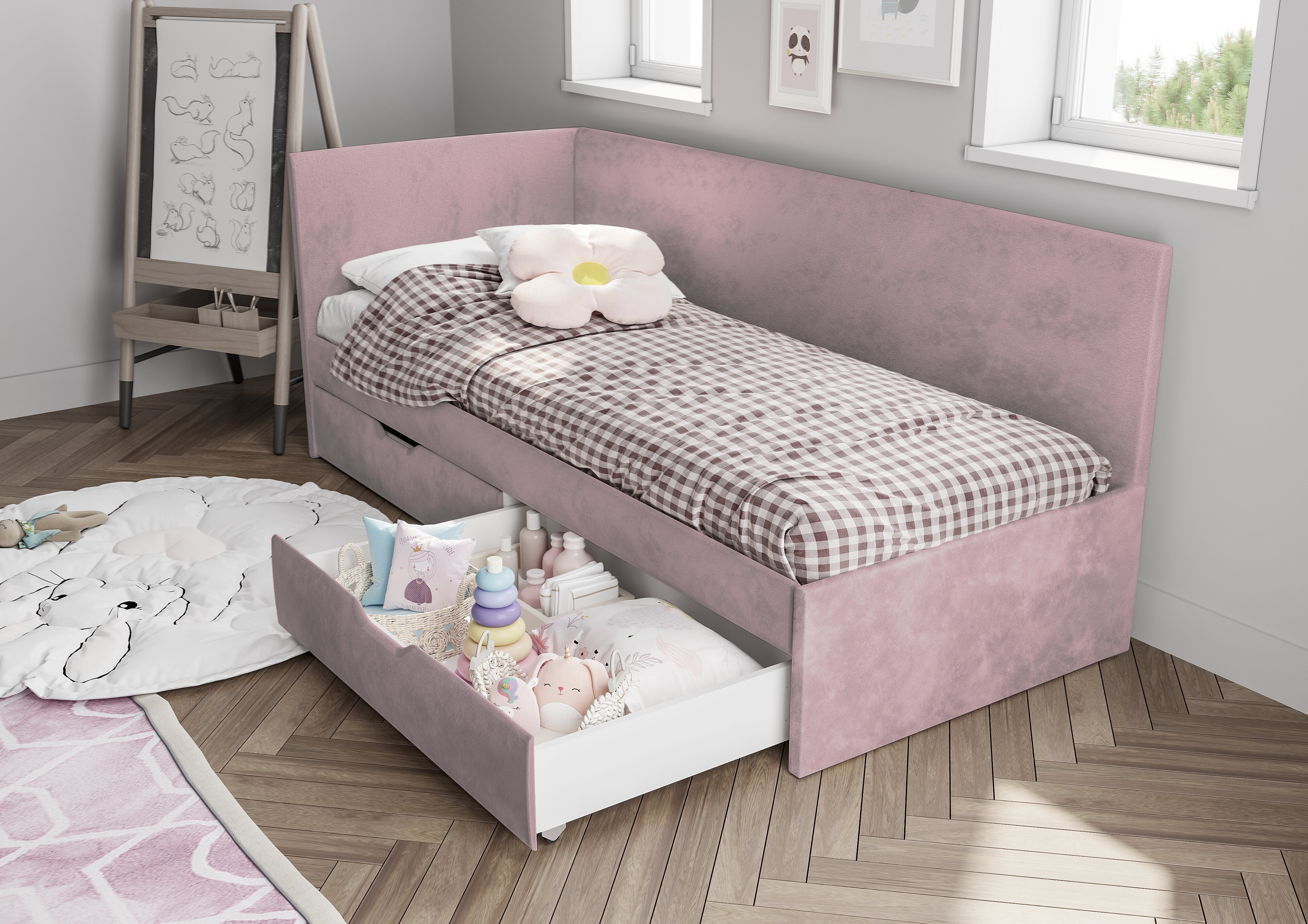 Описание. Кровать «Лео» - лучший выбор для детской комнаты. Плавные и лаконичные линии конструкции создадут атмосферу гармонии и спокойствия. Одно из важных преимуществ кровати - это мягкая обивка из велюра, что обеспечивает более комфортное и безопасное использование. Отсутствие ручек, открывание происходит за счет формы фасадов Обивочный материал. Ткань велюр с эффектом хамелеона, не оставляет следов. Этот эффект достигается засчет специальной обработки материала, который содержит глянцевые частицы, отражающие свет под разными углами. Рекомендуемая высота матраса: пружинного - не менее 180 мм, беспружинного - не менее 160 мм
