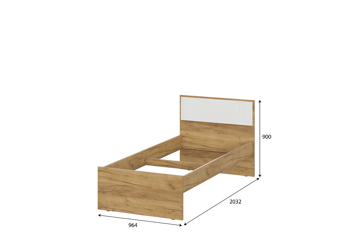 Кровать (0,9*2,0) с ящиками МС "Милан" Дуб Золотой/Белый Матовый