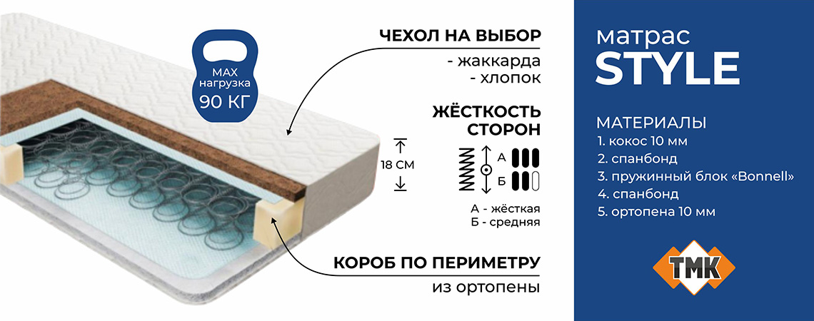 Style Матрас 1600*2000*180, жаккард/тик