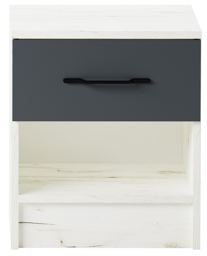 Тумба прикроватная «СОНАТА» с нишей и ящиком на роликовых направляющих. На фасад ящика устанавливается стильная металлическая ручка, чёрная, матовая.