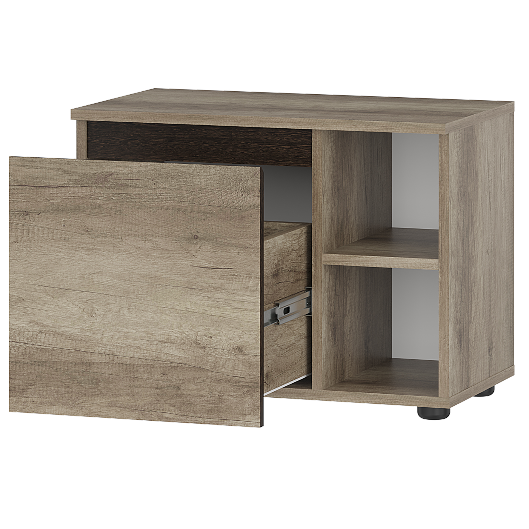 Компактная прикроватная тумба «Энигма» сэкономит пространство, но при этом позволит держать все самые нужные вещи рядом. Тумба состоит из одного вместительного ящика для постельного белья, а также открытых полок для мелочей.
