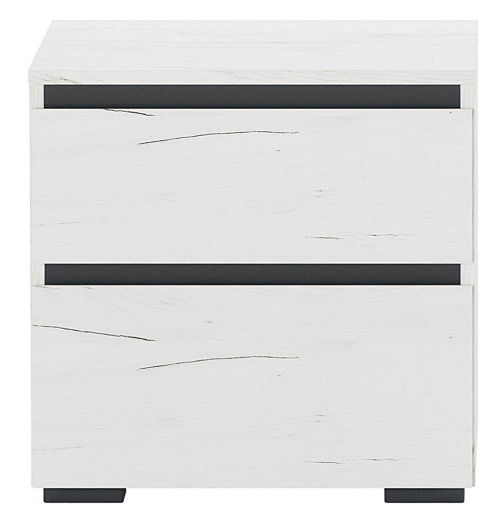 Тумба прикроватная «ГРЕТТА» с 2-мя ящиками на направляющих полного выдвижения. Применение интегрированной ручки на фасадах делает модель стильной и безопасной – панели ящиков открываются за профилированные выступы. Фасады обработаны кромкой 1 мм. Черная регулируемая ножка-опора.