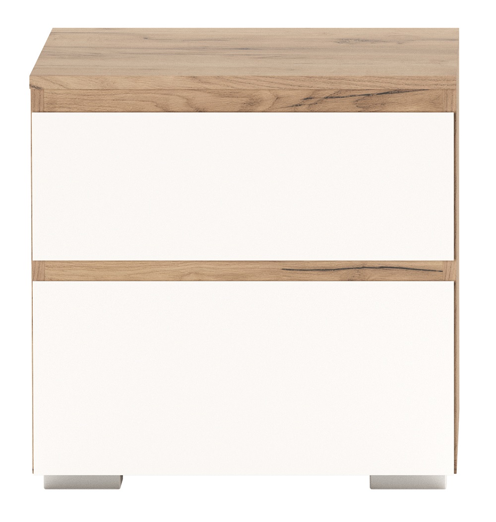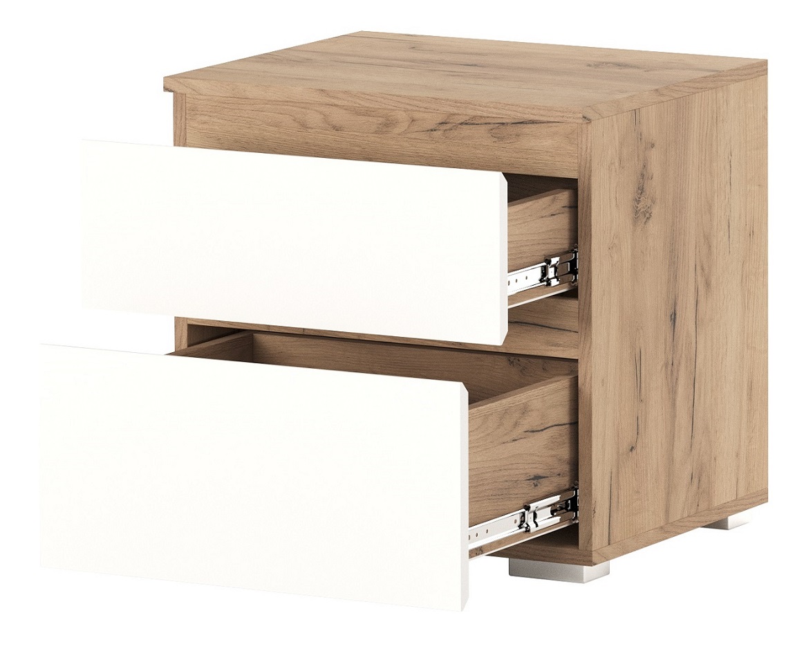 Тумба прикроватная «ГРЕТТА» с 2-мя ящиками на направляющих полного выдвижения. Применение интегрированной ручки на фасадах делает модель стильной и безопасной – панели ящиков открываются за профилированные выступы. Фасады обработаны кромкой 1 мм. Черная регулируемая ножка-опора.
