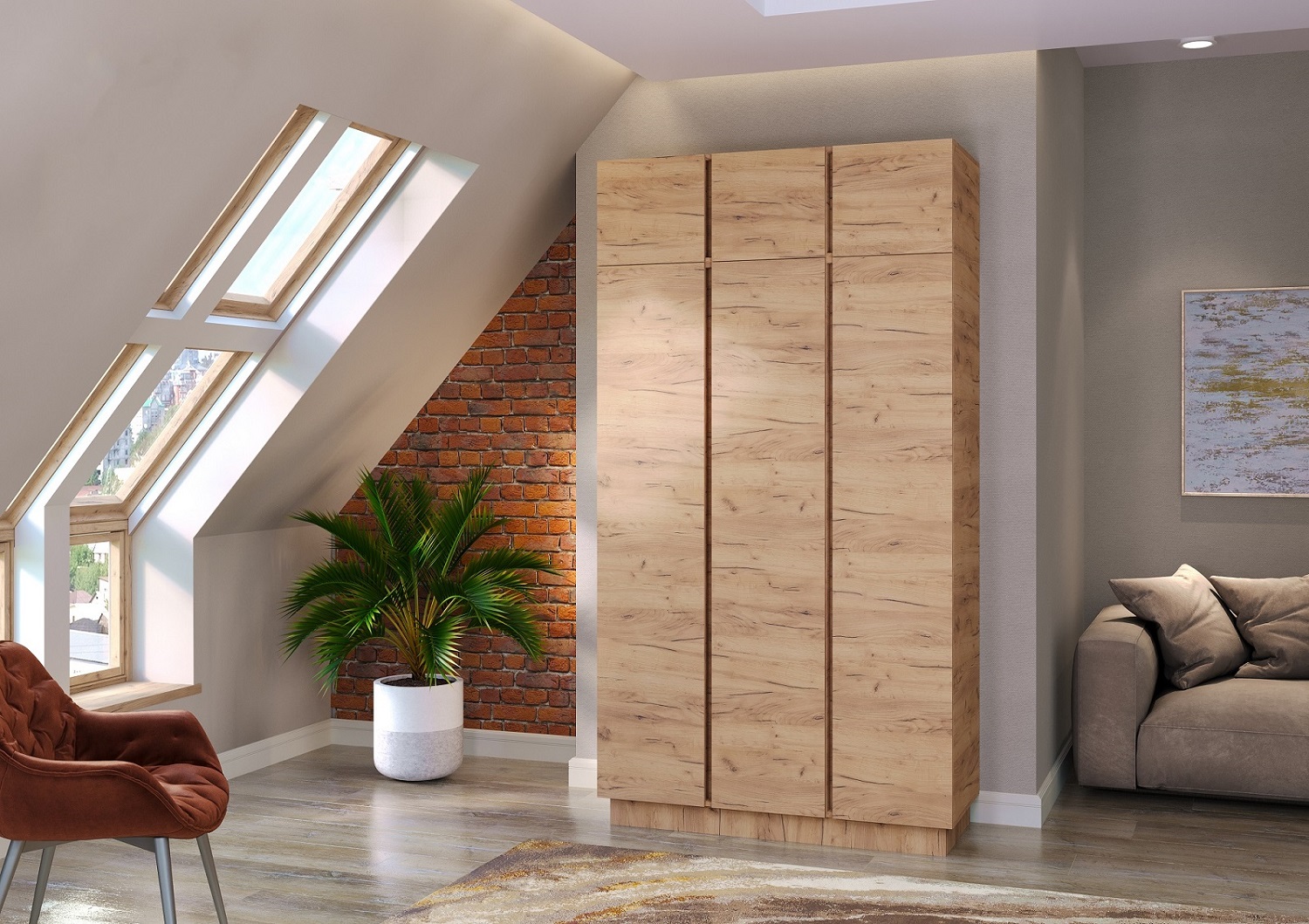 Шкаф 1210 3С ВЕРТИКАЛЬ с антресолью Крафт белый