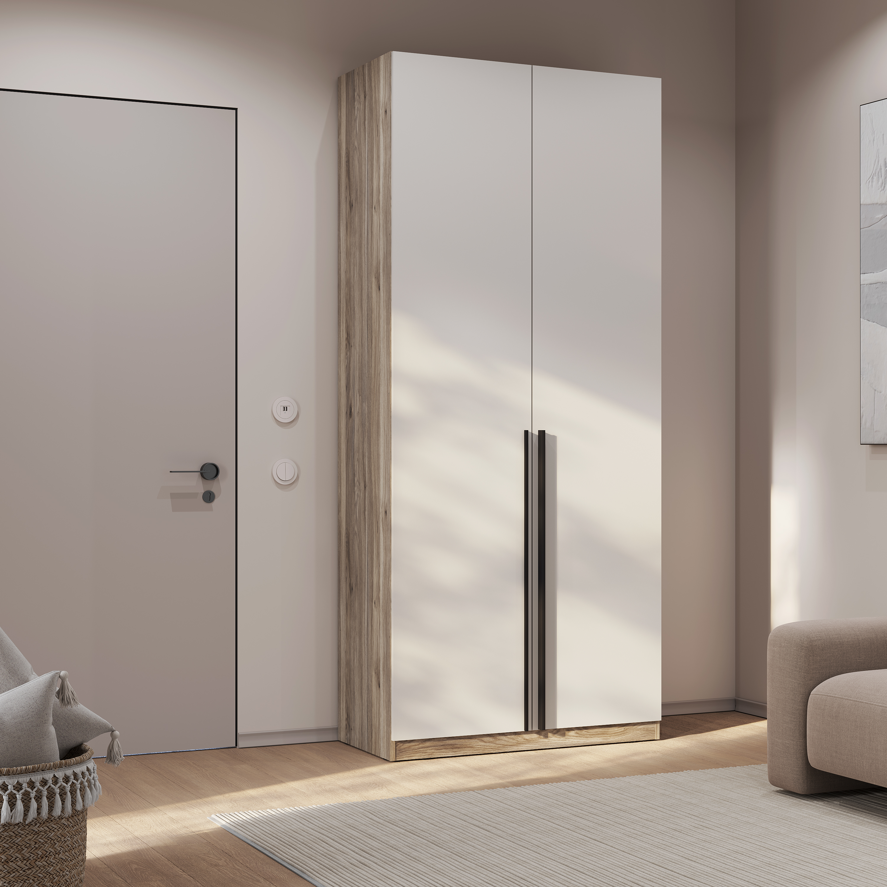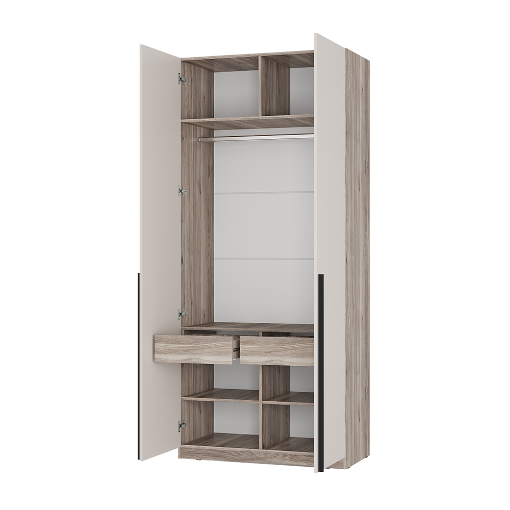 2-х створчатый шкаф «Урбан» - модель, которая легко впишется в любой интерьер. Геометричные линии и минималистичный дизайн позволят установить шкаф идеально в разных зонах комнаты. Модель оснащена всеми необходимыми пространствами для хранения: открытыми полками, ящиками и вертикальным отсеком со штангой.