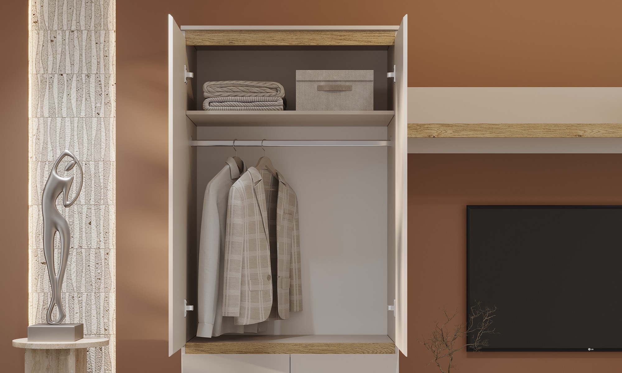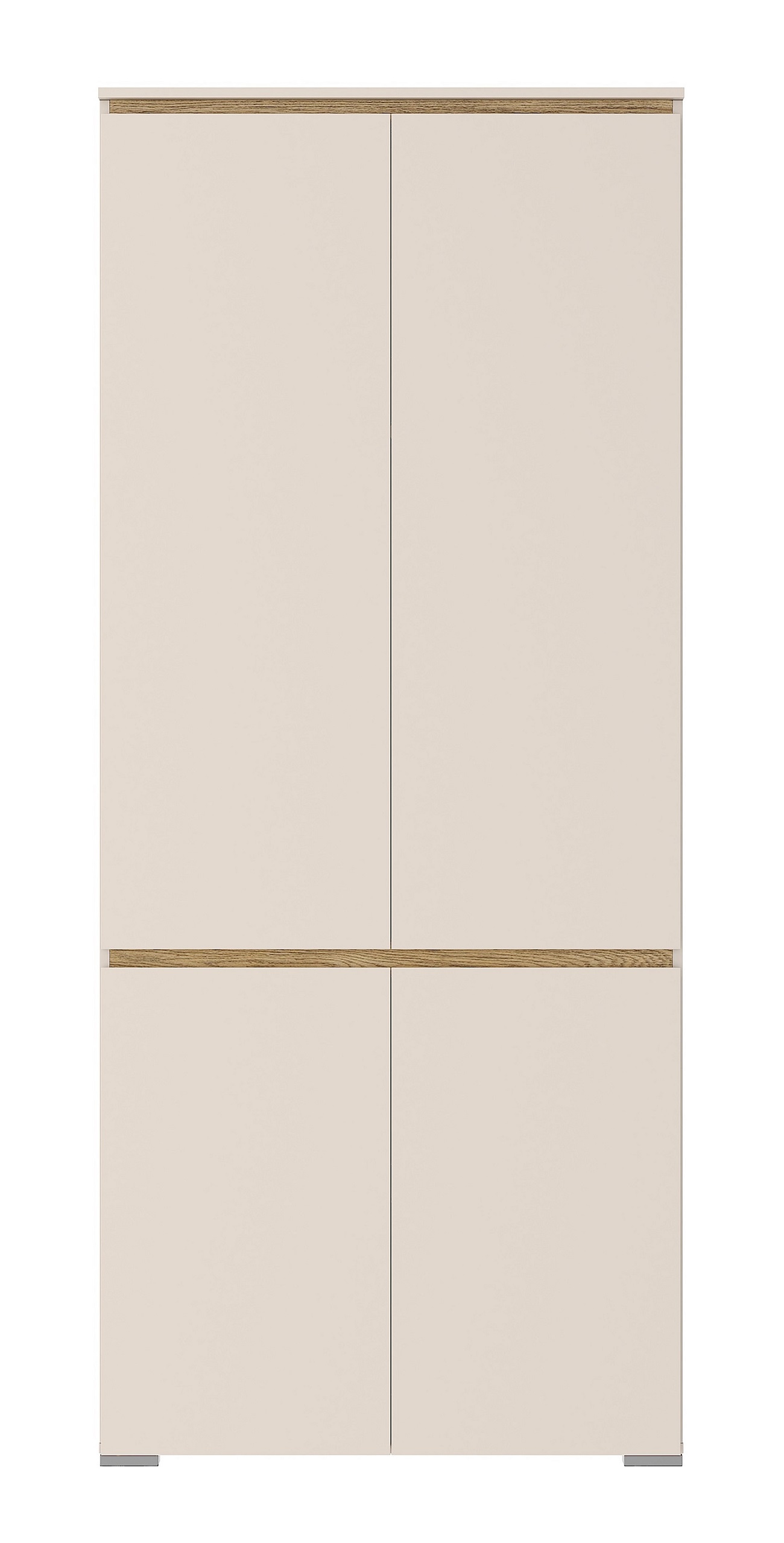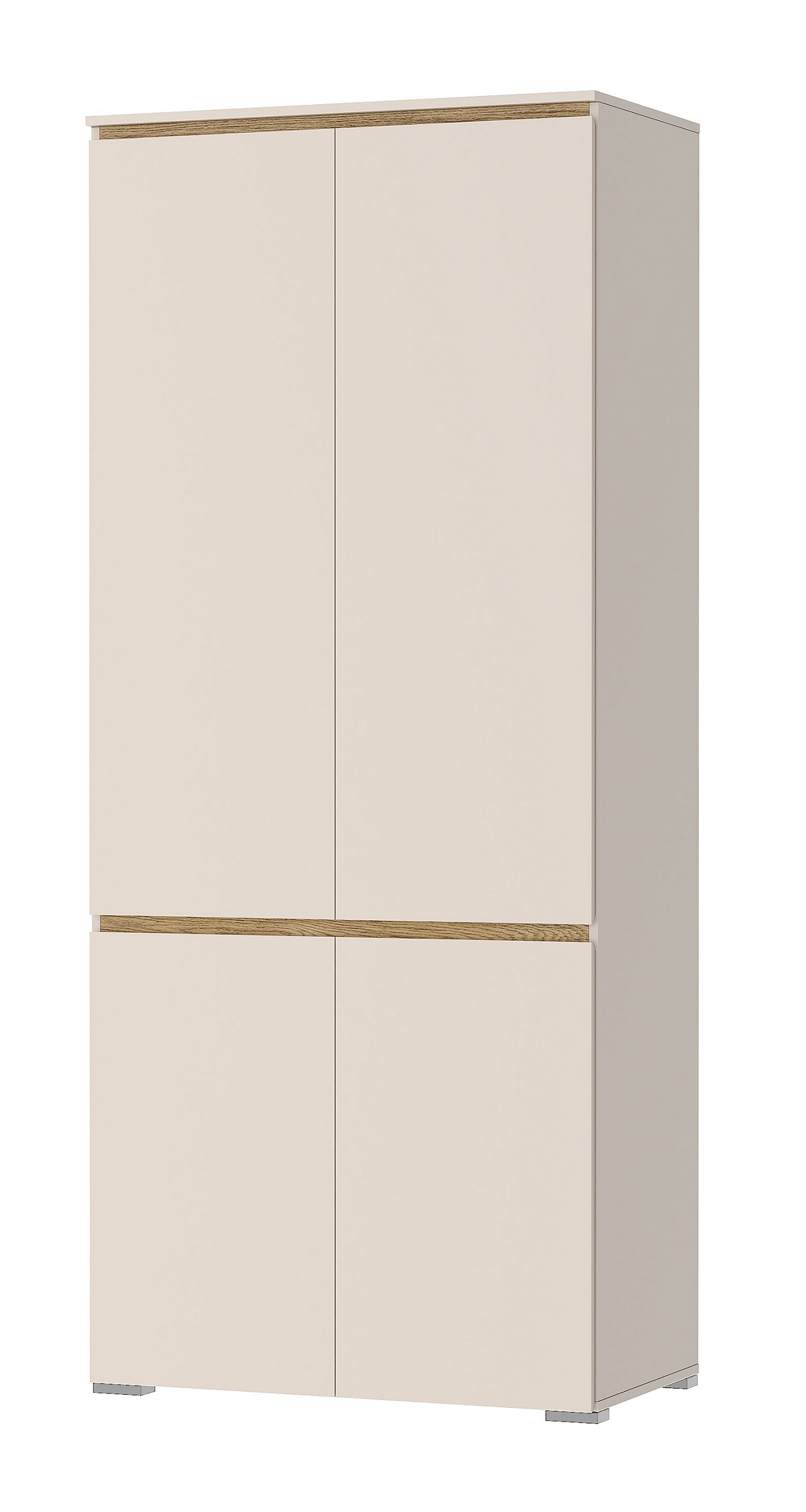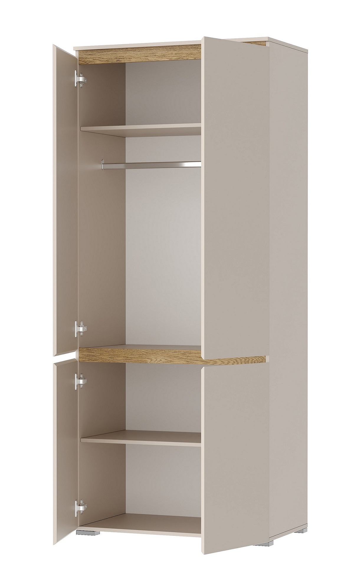 Шкаф 4С «ГРЕТТА» 4-створчатый, с поперечной металлической штангой для верхней одежды. Применение интегрированной ручки на фасадах делает модель стильной и безопасной – дверцы открываются за профилированные выступы. Фасады обработаны кромкой 1 мм. Серебристая регулируемая ножка-опора.