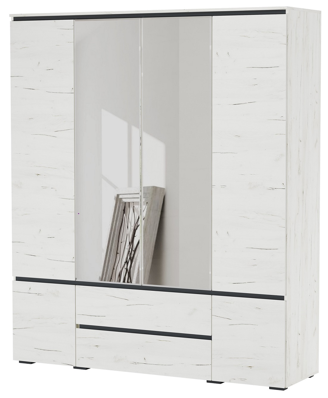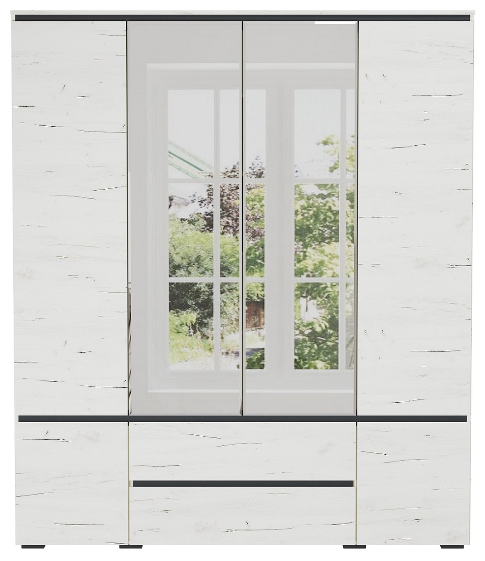 Шкаф 4С2Я с зеркалом "ГРЕТТА" Дуб Крафт белый - Антрацит