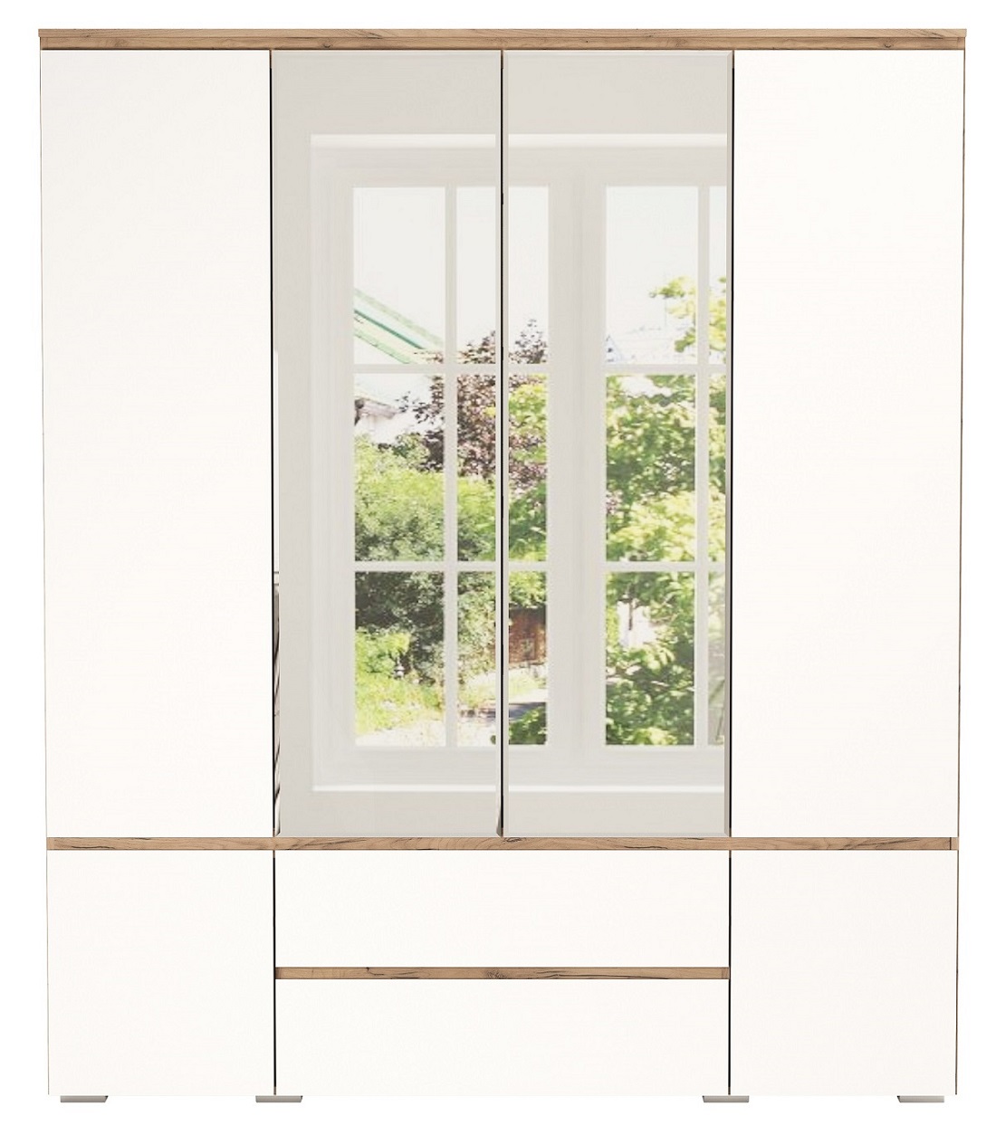 Шкаф 4С2Я с зеркалом "ГРЕТТА" Дуб Крафт золотой/Белый