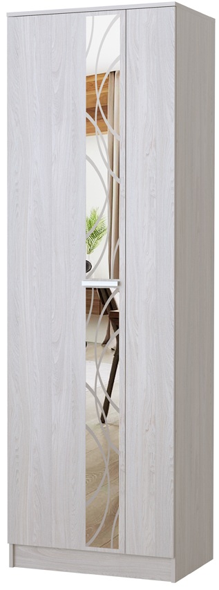 Шкаф СШ-700 «Сабина» 2-створчатый с полкой и поперечной металлической штангой. Фасад облицован зеркалами с пескоструйным орнаментом, повторяющимся во всех элементах системы.