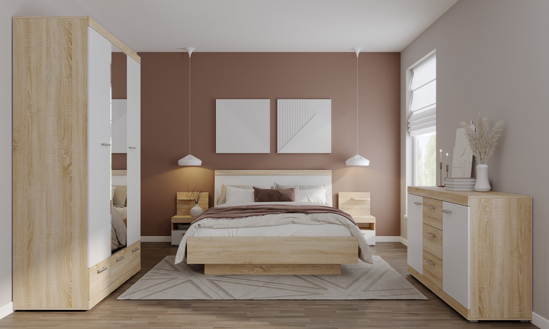 Обратите внимание на вместительные, внушительных габаритов шкафы и «парящие» кровати с различными вариантами изголовий: обшитые качественной тканью или в стиле-минимализме. Не хватает места для хранения вещей? Поднимаем основание кровати и пакуем кровать коробками!