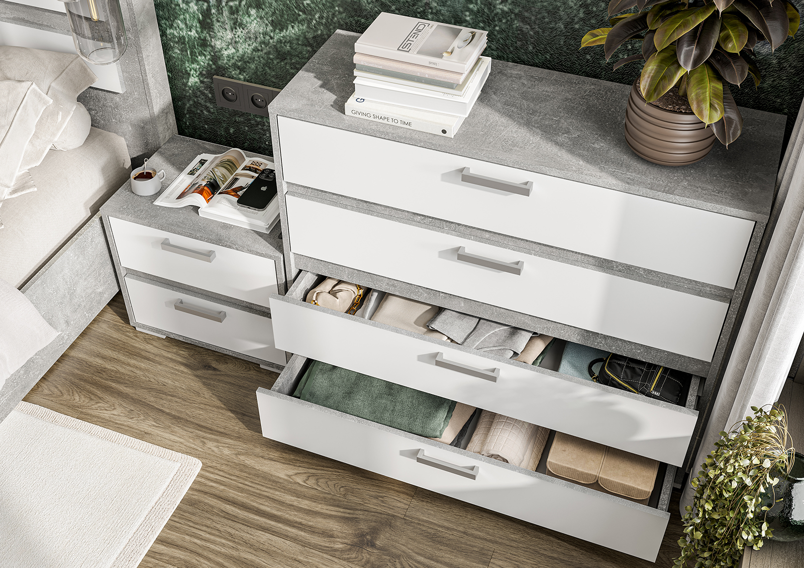 Комод ДЕНВЕР КМ 02 БЕЛЫЙ/АТЕЛЬЕ СВЕТЛЫЙ