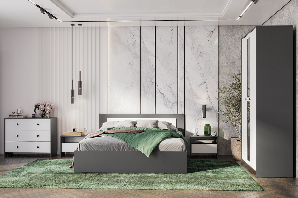Кровать двойная 1,6 Дольче Графит/Белый