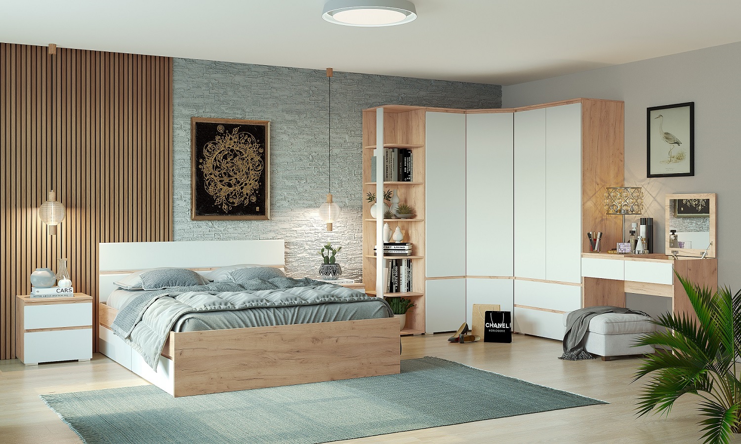 Спальня "ГРЕТТА" Композиция №5 Дуб Крафт белый/Антрацит