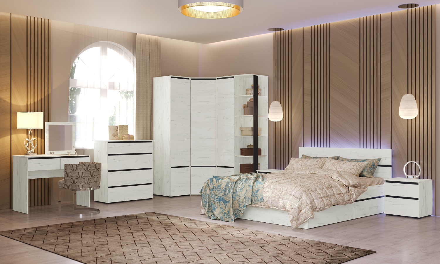В коллекцию вошли модульная гостиная, прихожая и программа для детской. Наличие множества элементов, созданных для применения в быту, удобных для размещения предметов интерьера, одежды и вещей, делают коллекцию мебели «ГРЕТТА» универсальной и желанной в любом доме.