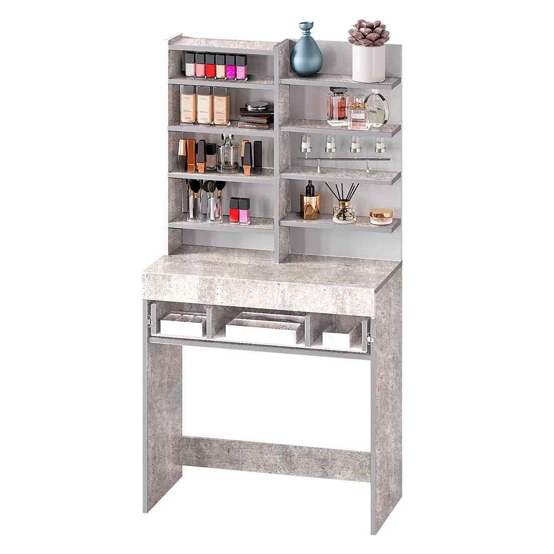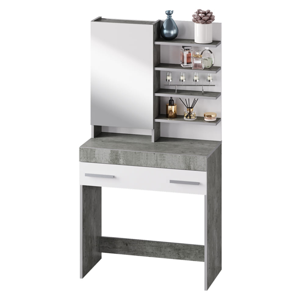 гармоничное сочетание белого цвета и цвета бетон позволит косметическому столу украсить любой интерьер.