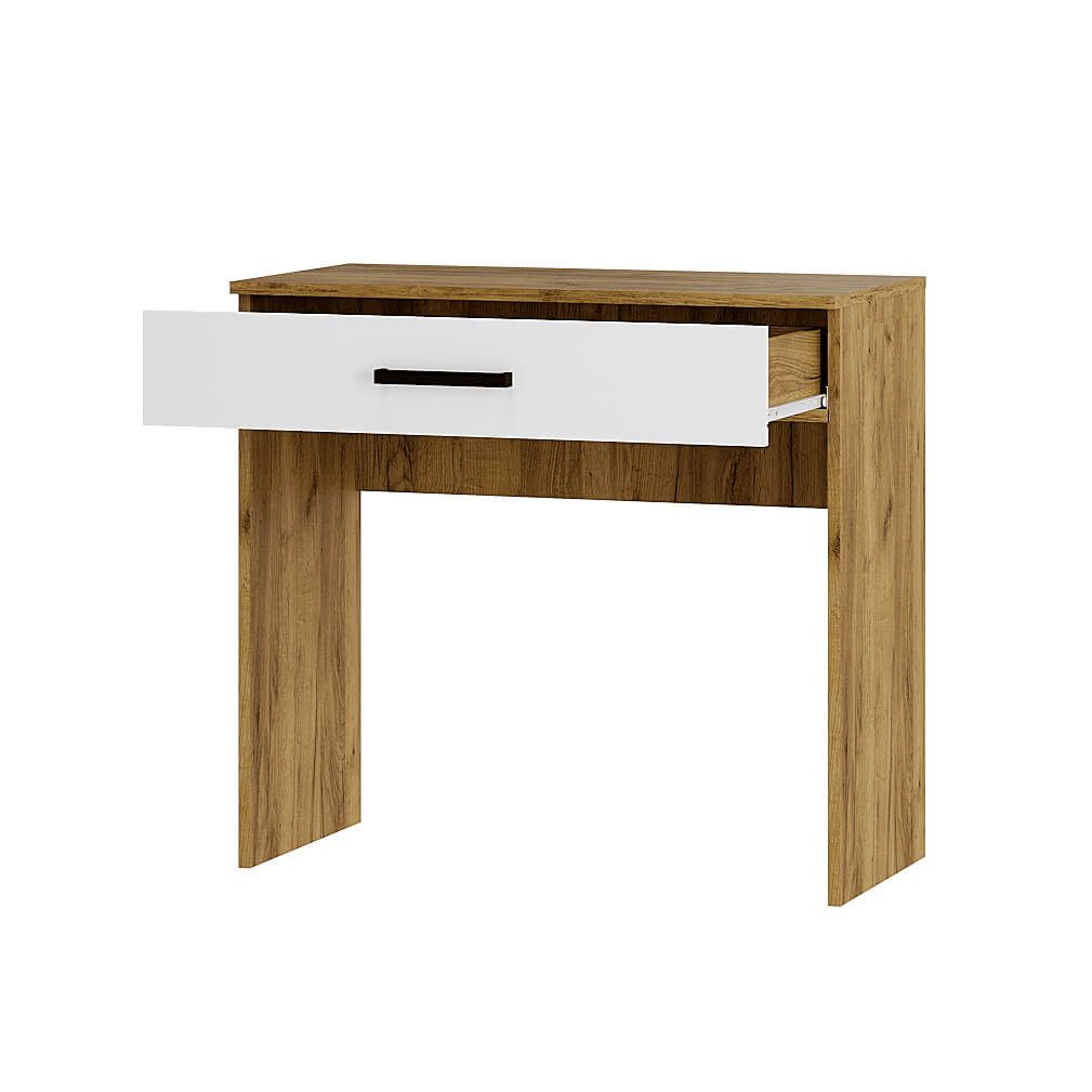 Легкий и компактный туалетный столик «Евро» подойдет для спальни, гостиной и прихожей. Выкатной ящик оснащен качественной фурнитурой и вмещает все нужные вещи – косметику, аксессуары и другие мелочи. Верхняя панель может использоваться как полка для дополнительных источников освещения или предметов, которые всегда должны быть под рукой.