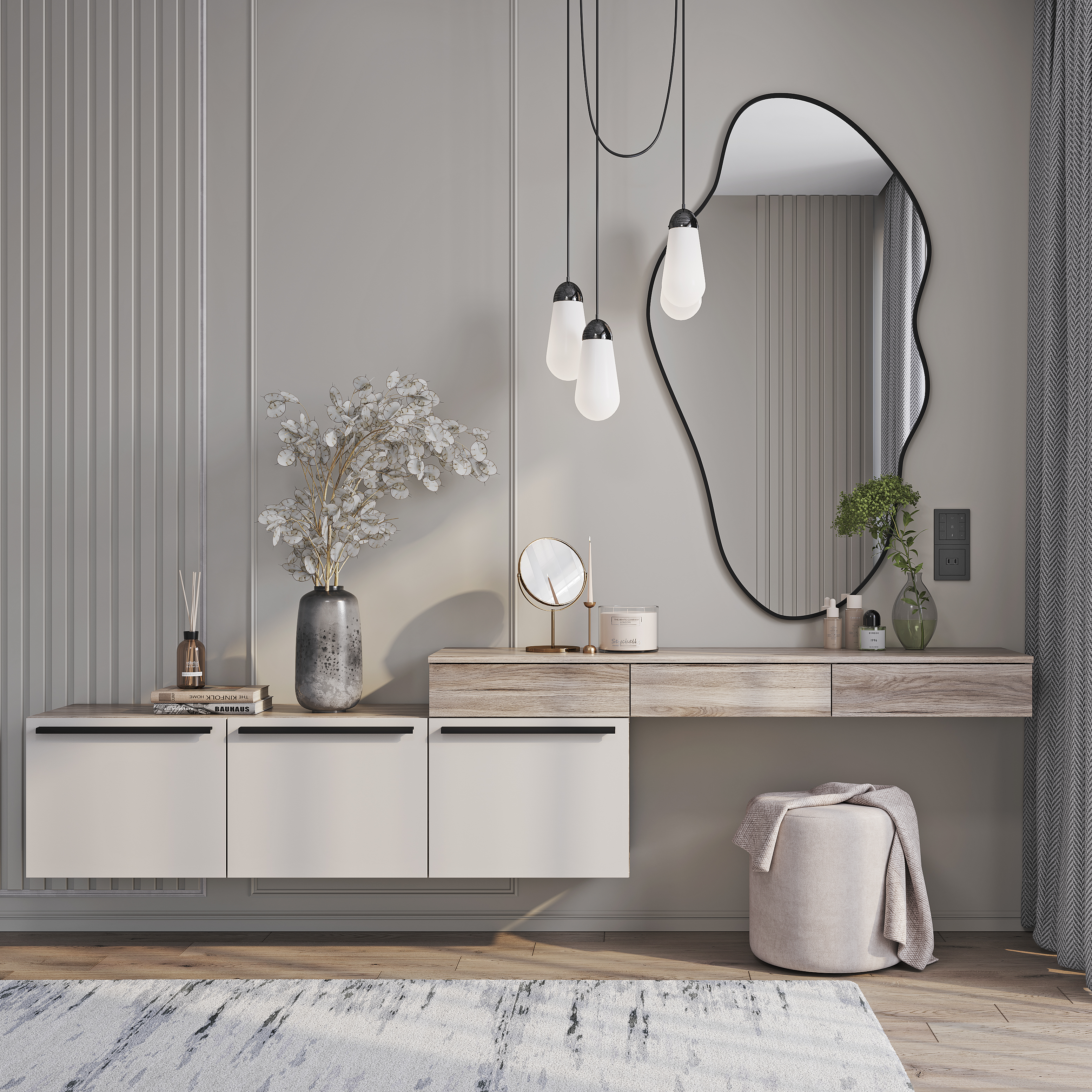 Тумба «Урбан» - это стильное и практичное решение, которое поможет организовать грамотное хранение мелочей и сэкономить пространство в комнате. Тумба крепится к стене с помощью навесов, ее можно расположить над рабочим столом, в гостиной или спальне. Интересная особенность дизайна данной модели – это минималистичные фасады без ручек. Ящики открываются с помощью толкателей с магнитами.